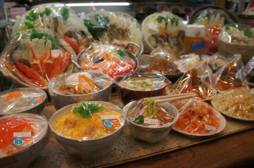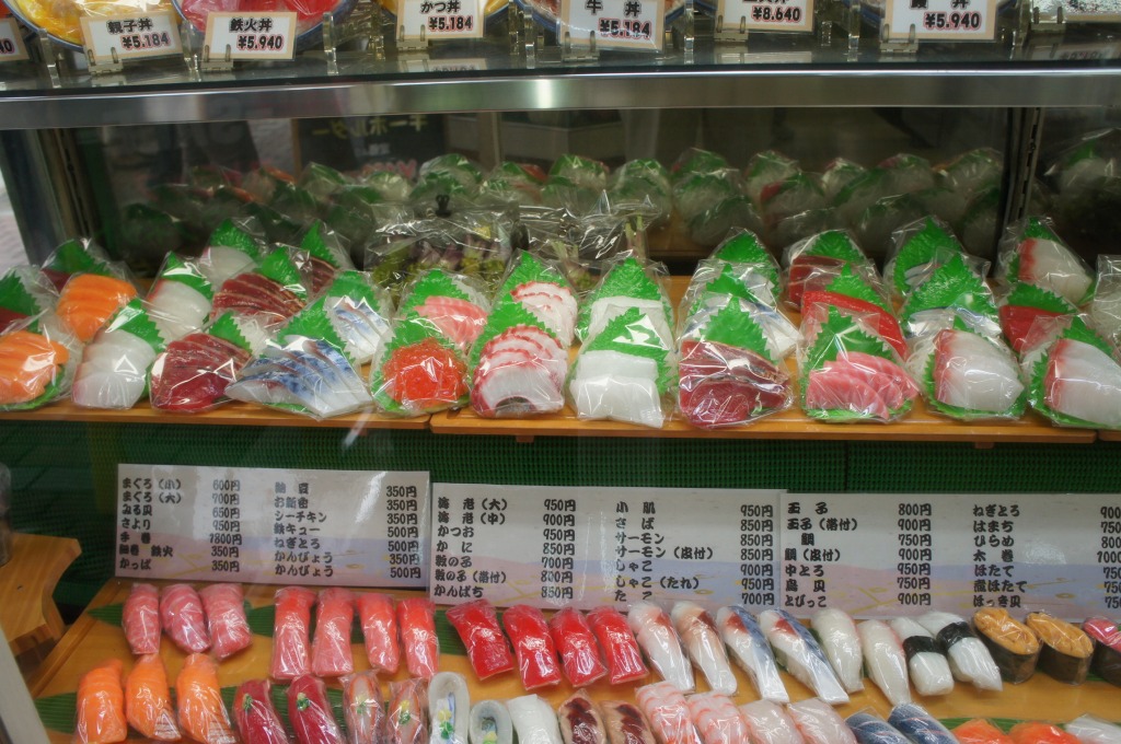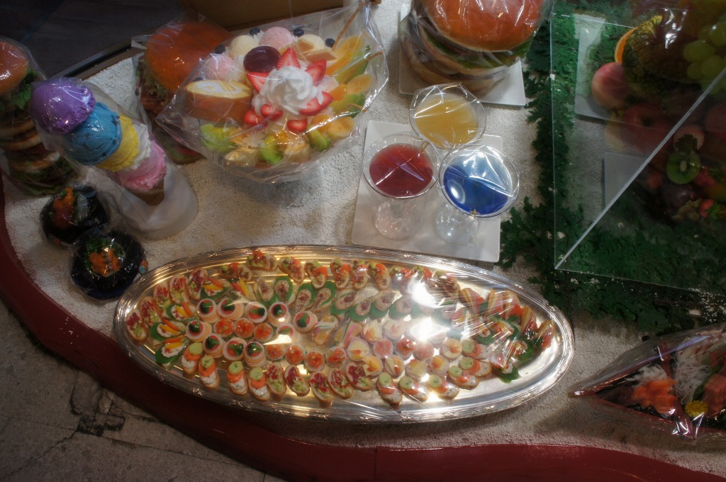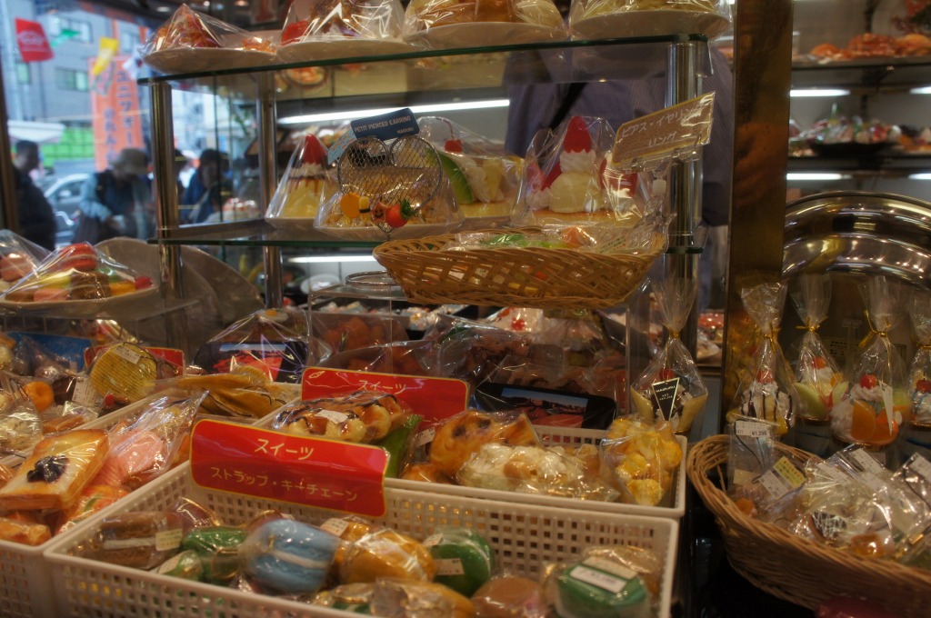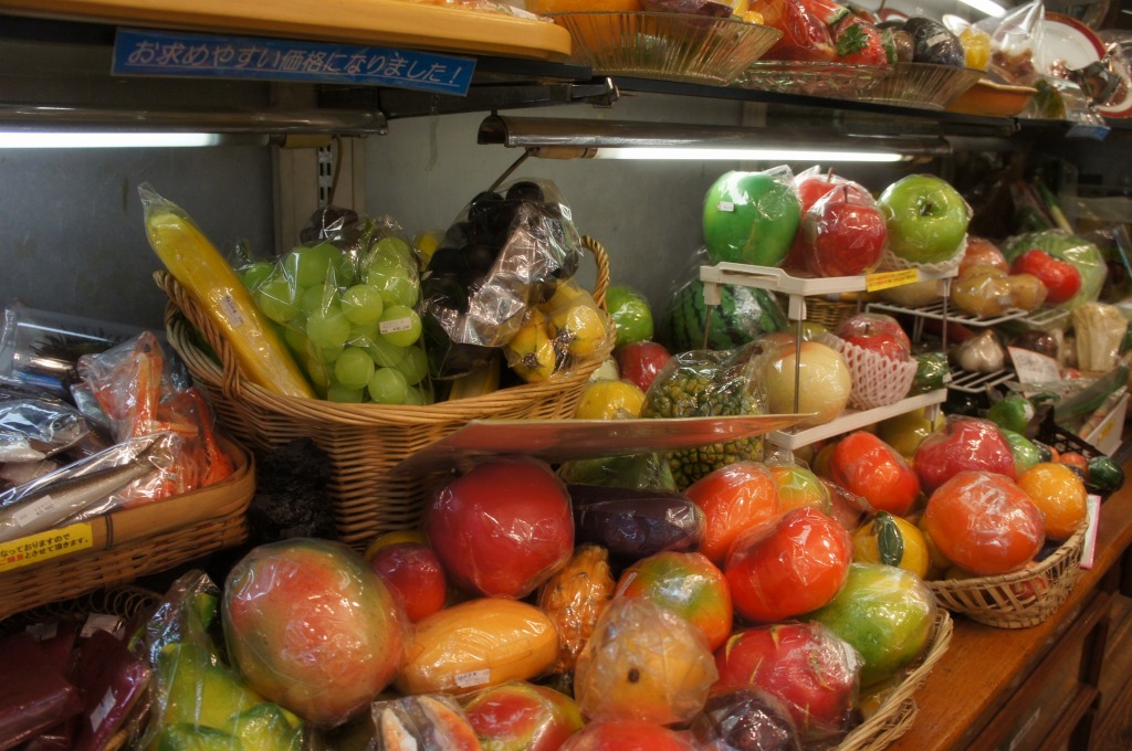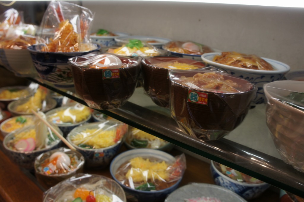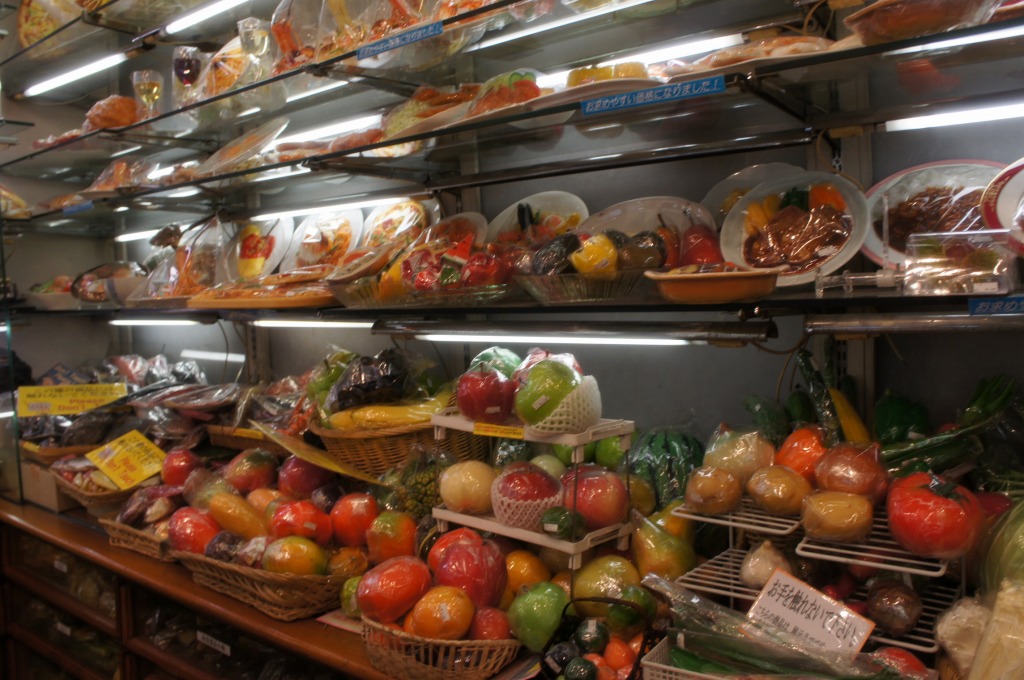 台所用品、キッチン用品なら何でもありだが、食品サンプルは圧巻だ。沢山の冷やかし客が見たり触ったす