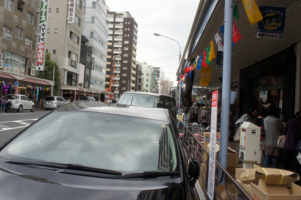 問屋街らしく道の両側はコインパーキングがづらりと並び、納品やら買付の車がビッシリと停まっている。