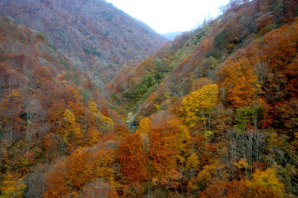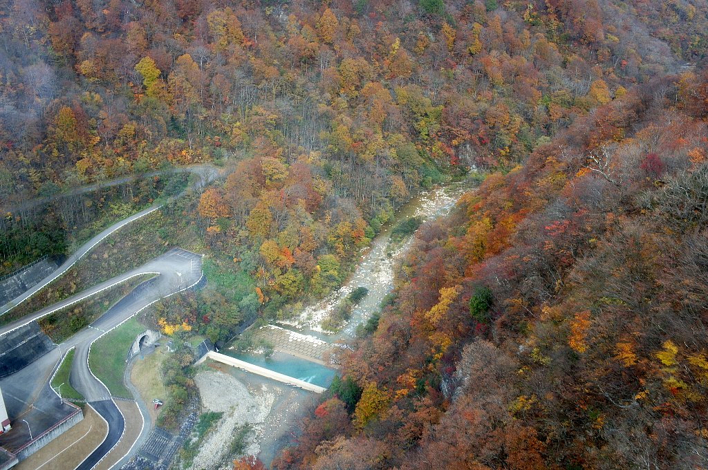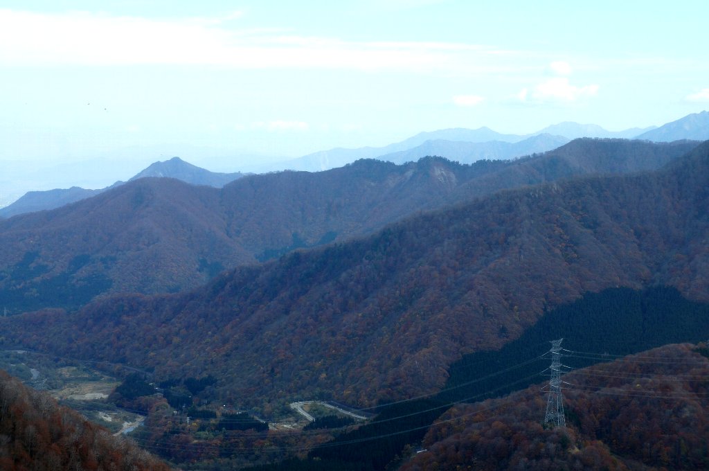 麓付近は紅葉真っ盛りである 清津川が流れる二居渓谷は眼下である