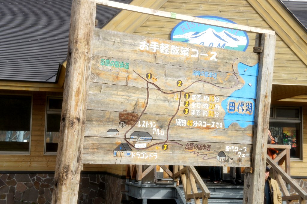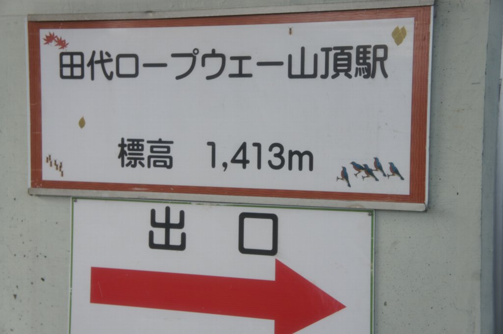 10分約2kmロープウェーに揺られると山頂駅である。ここから田代高原のドラゴンドラ山頂駅まで20分ほど下る。