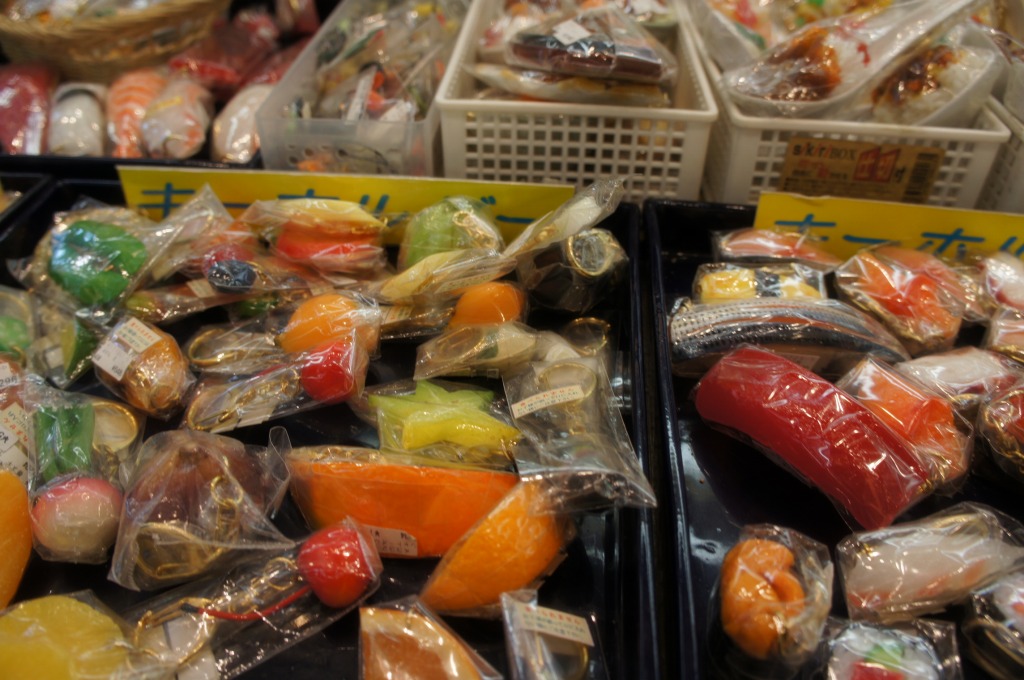 台所用品、キッチン用品なら何でもありだが、食品サンプルは圧巻だ。沢山の冷やかし客が見たり触ったす